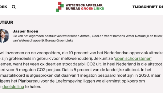 Jasper Groen, AB-lid namens WN in AGV, schreef een stuk voor De Helling, het wetenschappelijk tijdschrift van GroenLinks. Zeespiegelstijging en hogere rivierwaterstanden maken duidelijk dat een drastische andere omgang met het watersysteem noodzakelijk is. In de praktijk wordt die andere koers door de verschillende overheden nog niet ingezet. Dit wordt toegelicht aan de hand van voorbeelden in AGV.