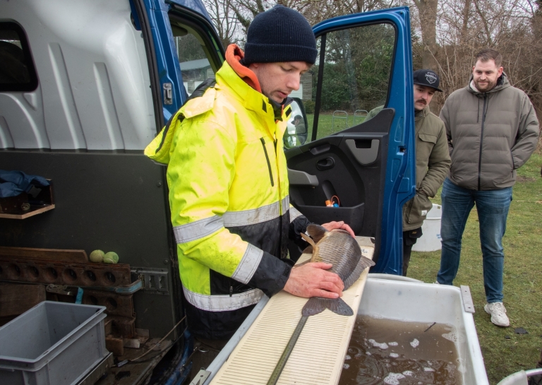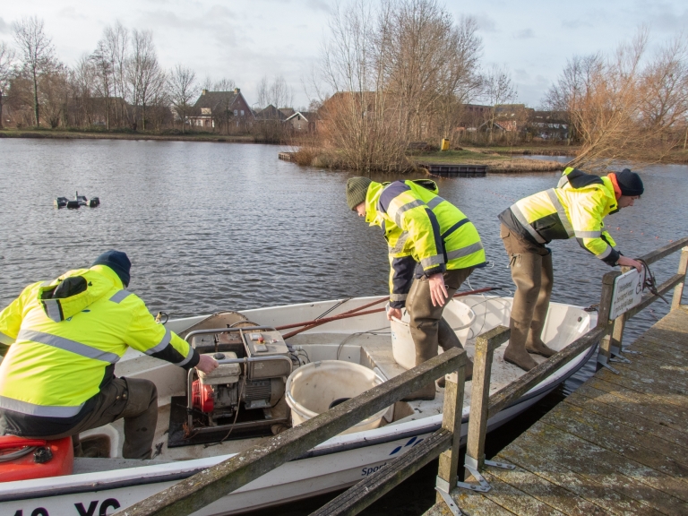 Een groep mensen van Sportvisserij Nederland bemonsterde 1 februari 2023 visvijver Het Ven in Veghel om de kwaliteit van de visstand te beoordelen.