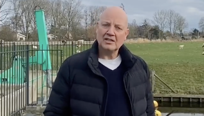 Lijsttrekker Ron Dujardin in de wijk De Streek in Etten-Leur, een duurzame wijk, waar natuur en water ook een belangrijke rol speelt