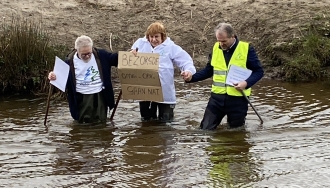 Een delegatie van Water natuurlijk heeft een oude traditie vorm gegeven door een doorwaadproef te doen door de Mark.
