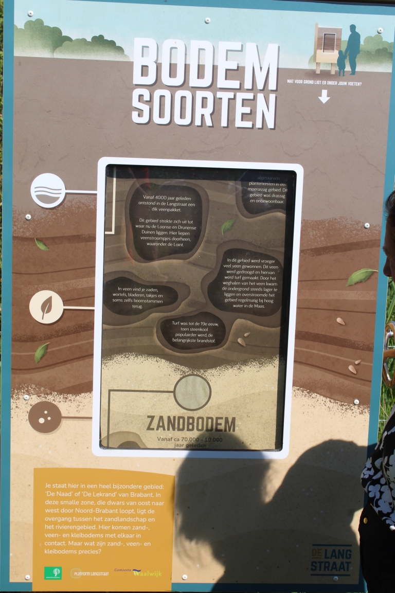 met name het goed beheren van het waterpeil en zorgen dat in de aangrenzende percelen alleen die activiteiten plaatsvinden die de natuurontwikkeling niet verstoort en beter zelfs ondersteund is een uitdaging. Er zijn nu al delen klaar en ook toegankelijk voor publiek. Daarom werd de informatie ondersteund door een wandeling door een deel van het gebied, waarbij Albert uitleg heeft gegeven over de activiteiten en wat resultaten zijn. Ook leuk om te zien dat de gemeente Waalwijk doormiddel van leuke borden ook een educatief karakter heeft toegevoegd voor jong en oud. In het gebied zijn de wandelingen te volgen via de knooppunten en kan een ieder zelf zijn wandeling uit kiezen. Een bezoek is de moeite waard, bijvoorbeeld vanaf restaurant landzicht aan de Winterdijk.