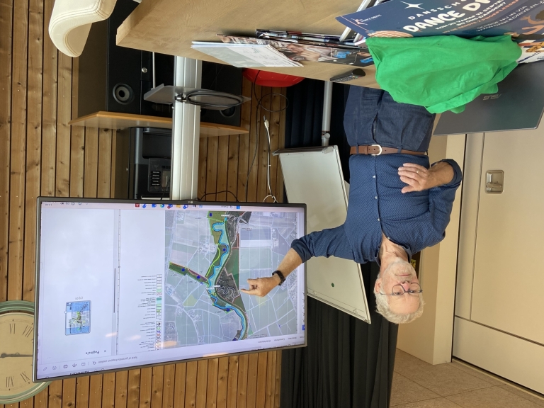 Joop van Riet heeft ons samen met Karin van den Berg bijgepraat over de ontwikkelingen in het zuidelijk deel van het Markdal. Ook hier wordt de de Mark meer meanderend naar voorbeeld van de oorspronkelijk loop terug gebracht, wordt extra aandacht besteed aan nieuwe natuurontwikkeling en de mogelijkheden van extensieve recreatie in vorm van voet/fietspaden.