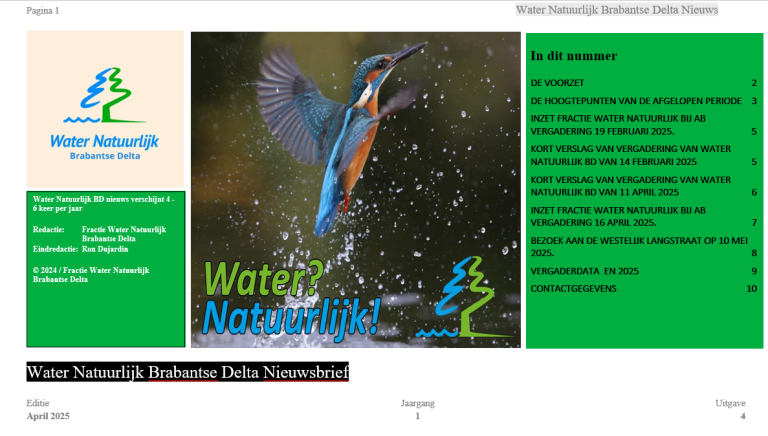Inzet fractie Water Natuurlijk Brabantse Delta periode maart/april 2025 Algemeen Bestuur en commissies