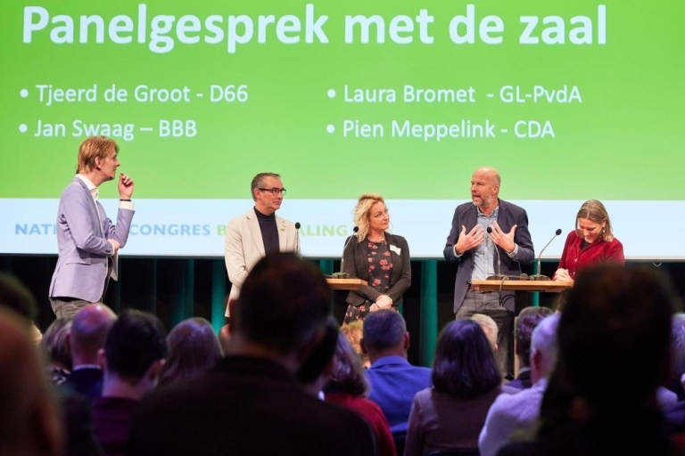 Duidelijk werd ook dat de beheer- en onderhoudskosten van wegen en gebouwen inmiddels opgelopen zijn tot meer dan 1,7 miljard per jaar. De verwachting is dat die kosten alleen maar zullen stijgen zonder mitigerende maatregelen. Elk nieuw kabinet zal daarom aan bodemdaling volop aandacht moeten besteden. Omdat over een kleine week de Tweede Kamerverkiezingen zullen plaatsvinden, was er een paneldiscussie met kandidaat-Tweede Kamerleden Tjeerd de Groot (D66), Lisa Bromet (GroenLinks), Jan Swaag (BBB) en Pien Meppelink (CDA). Het werd eens te meer duidelijk dat zowel D66 als GroenLinks/PvdA vaart wilde maken met het tegengaan van het probleem van bodemdaling.