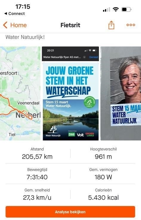 Gisteren heb ik samen met lijstduwer nummer 25 Johannes ('Hans') Brug en kandidaat voor het algemeen bestuur, van Water Natuurlijk Hoogheemraadschap De Stichtse Rijnlanden (HDSR), Maarten Verkerk, nummer drie op lijst 1, 205 km langs de grenzen van het waterschap gefietst om aandacht te vragen voor de waterschapsverkiezingen van 15 maart. Het was geweldig mooi in meerdere opzichten; zon, rustig, lekkere koffie onderweg en een tocht door mooi gebied en langs water(s).