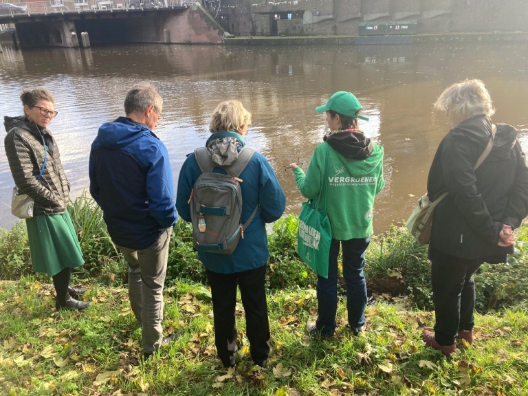 Harmke liet na de regioledenvergadering ten overvloede haar betrokkenheid bij water en groen zien door een gezellige en zeer informatieve excursie te organiseren langs de singel als vrijwilliger bij Vergroening SIngel030.
