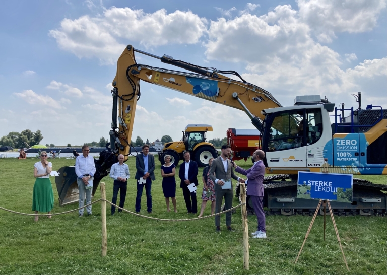 Een aantal eisen en/of gunningscriteria zijn als standaard uitgangspunt gesteld zoals de CO2- prestatieladder, zowel als aanbestedingsinstrument als als CO2- managementsysteem. Bij iedere aanbesteding waar dit relevant is stelt HDSR eisen stelt ten aanzien van de in te zetten motoren en brandstoffen middels het scoreblad emissiereductie (SER). Door de inzet van de SER worden schonere motoren en brandstoffen ingezet dan wordt voorgeschreven in het onlangs ondertekende Convenant Schoon en Emissieloos Bouwen (SEB). In de aanbesteding van het groenonderhoud is door de inzet van dit criterium al een CO2-reductie van 90% behaald. Achterliggend idee is dat HDSR met deze bijlage ieder jaar steeds hogere minimumeisen gaat stellen aan de motoren en brandstof (energiebron). Daarmee worden marktpartijen gestimuleerd emissieloze mobiele voertuigen in te zetten en daarin een groeipad te volgen. Een goed voorbeeld is de graafmachine op waterstof die op de foto staat en mede is ontwikkeld voor het emissieloos versterken van de Lekdijk.