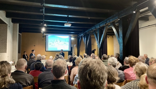 In een bomvolle Napoleonschuur in Amerongen vond de eerste van meerdere bewonersavonden plaats over de gevolgen van de noodzakelijke versterking van de Lekdijk tussen Wijk bij Duurstede en Amerongen.