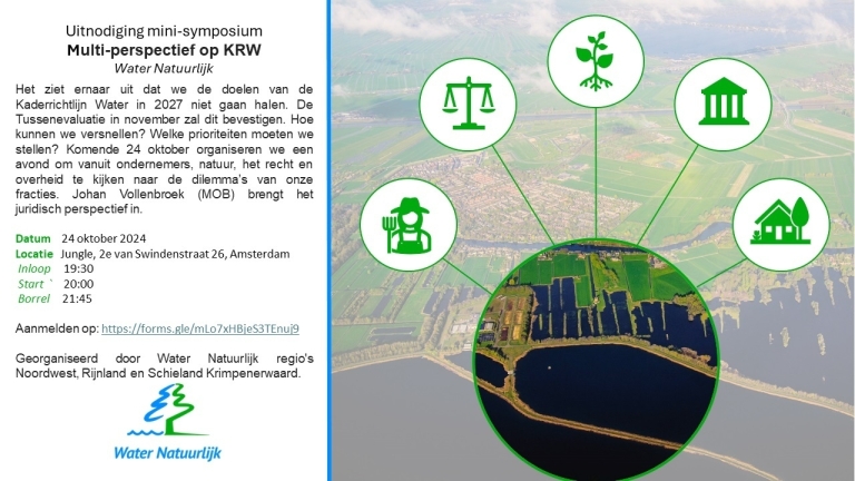 De avond wordt georganiseerd door de Water Natuurlijk regio's Noordwest, Rijnland en Schieland Krimpenerwaard.
