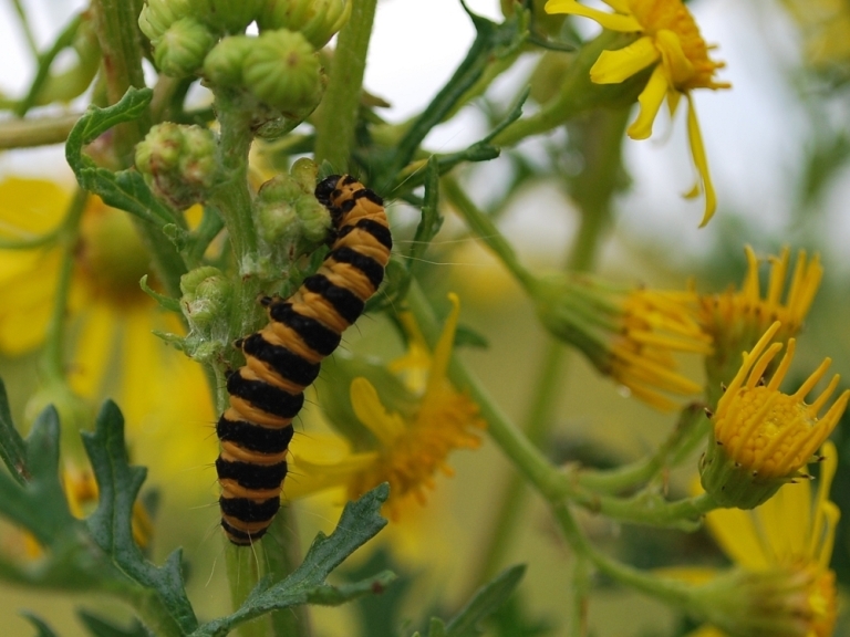 Jakobskruiskruid is zeker een giftige plant (link opent in een nieuw tabblad). Als paarden en koeien hiervan flinke hoeveelheden zouden eten, kan dat heel vervelende gevolgen hebben. Dat gebeurt echter vrijwel nooit, en het is te voorkomen. Er is daarom geen enkele reden om deze plant, die voor veel insecten heel waardevol is, te bestrijden.