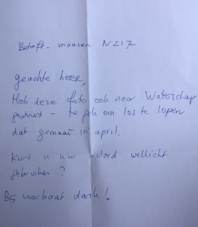 Water Natuurlijk kreeg afgelopen week een klacht over het maaibeheer langs de provinciale weg N217 in de Hoeksche Waard.