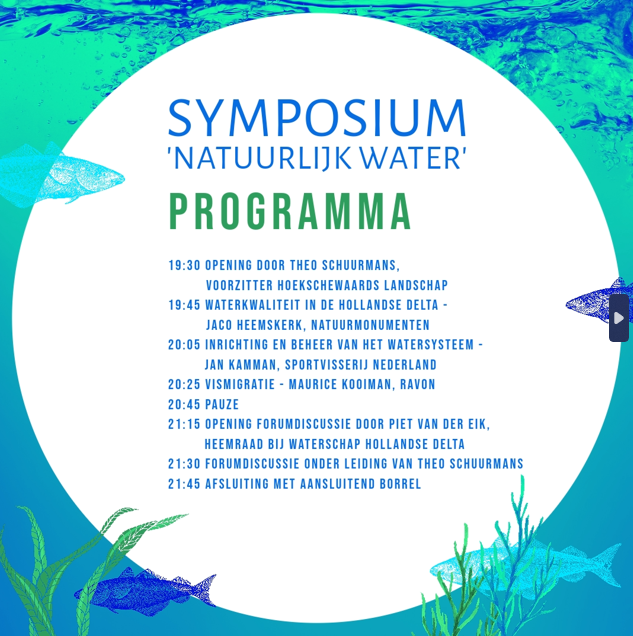 Onder leiding van Theo Schuurmans, voorzitter van Hoekschewaards Landschap gaan de sprekers in discussie en in gesprek met de zaal. De organisatoren hopen met het symposium een bijdrage te leveren aan verbetering van het watersysteem en de betrokkenheid bij het water te vergroten. Water is van levensbelang.