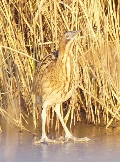 Wellicht heeft het ermee te maken maar sinds een tijdje worden er hier waarnemingen gedaan van een roerdomp. De roerdomp is een fascinerende vogel. Deze reigersoort die als bedreigd op de Nederlandse rode lijst staat kan zich perfect verstoppen in riet. Dit komt door zijn geelbruine schutkleur met donkere patronen. Als hij vermoedt dat hij wordt gezien dan steekt hij zijn kop omhoog en gaat in de paalhouding staan. Zo gaat hij helemaal op in de achtergrond. In het voorjaar kun je hem beter horen dan zien. Hij heeft een zeer lage hoempende baltsroep. Deze lage tonen dragen zeer ver.
