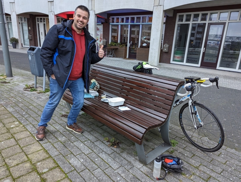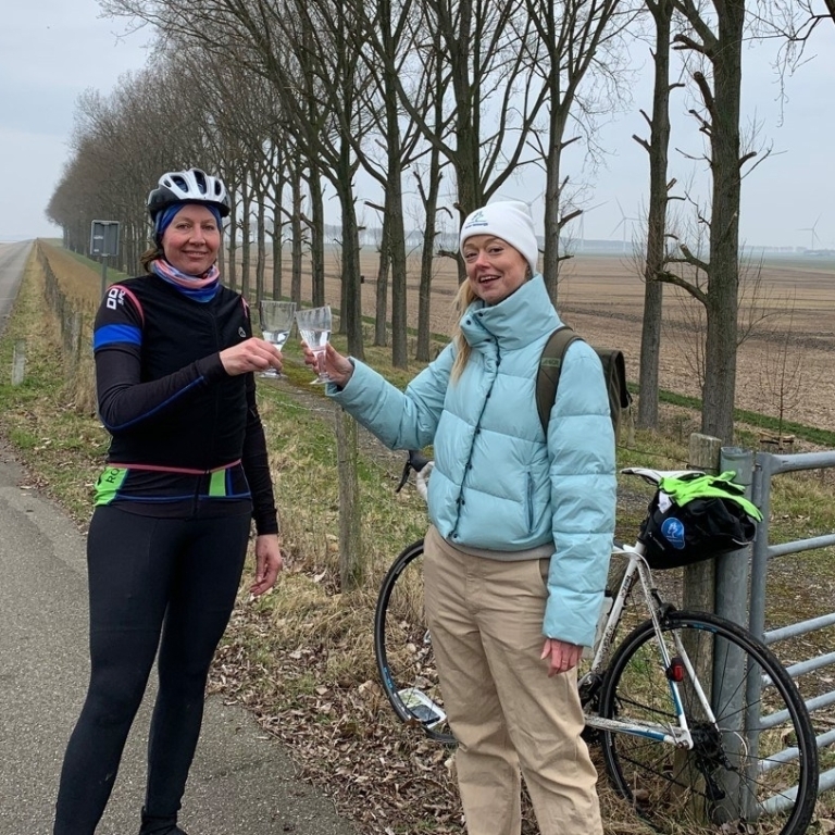Op zaterdag 11 februari gaat om 6 u de wekker. Na een eerste filmpje, dat we voor de campagne direct live op Instagram posten en waar de rest van ons campagneteam naar verwijst op andere social media (allemaal nog wat onwennig, niemand is expert, maar gezamenlijk komen we een eind) stap ik op de fiets. Veel te weinig trainingskilometers in de benen, want de campagne kost tijd. Maar zo’n afstand rij je vooral op karakter, hou ik mezelf voor. Met een gedetailleerd schema op zak, 8 boterhammen met pindakaas en vegaworst, 5 snickers en een reserveband vertrek ik in het donker.