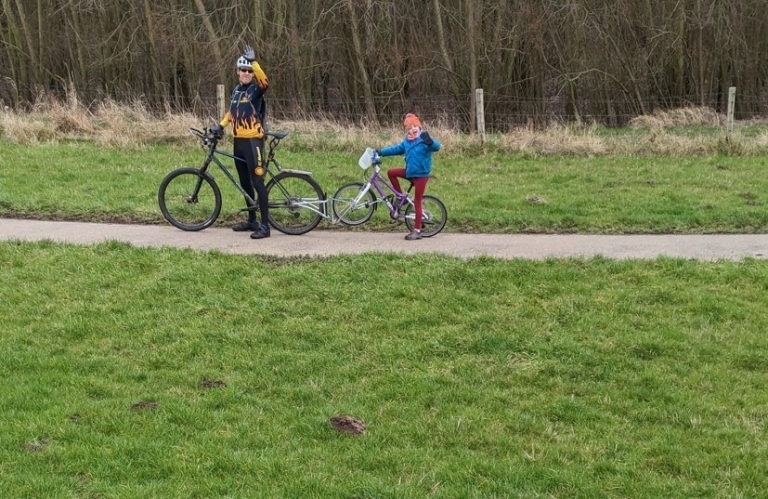 De moeheid begint toe te nemen. Alweer zorgen anderen voor een grote opsteker: man en jongste dochter zijn deze kant op gekomen om een stukje mee te fietsen! Slecht voor de gemiddelde snelheid, goed voor de moraal, en dat laatste weegt een stuk zwaarder vandaag.