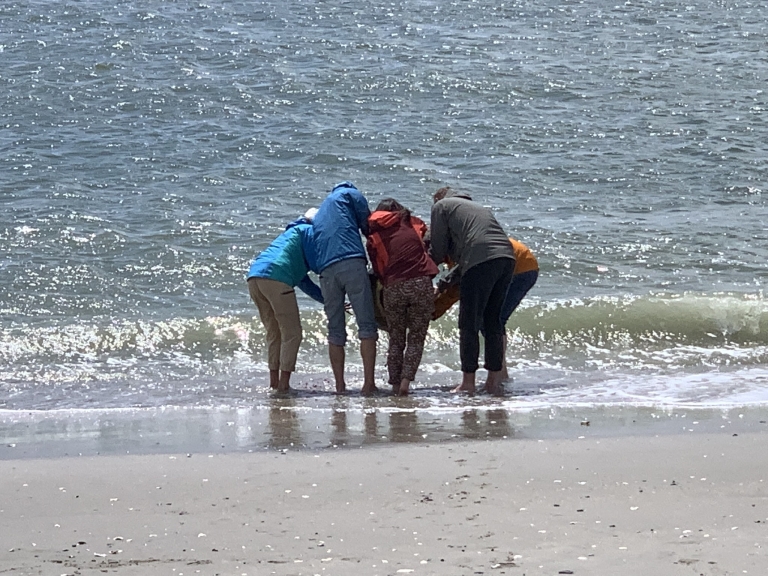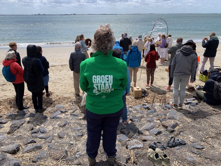 Wij wandelden het laatste traject mee over de Noordelijke route, een prachtige wandeling. Li An kwam met het grootste deel van de (mee-)wandelaars aan met een boot vanaf Breskens. Aan de buitenzijde van de Piet Heinkade vond de afsluitende ceremonie plaats met de hele groep. Hierbij werd het schone water van de bron, die Li An al die tijd met zich meegedragen heeft, na een heel ritueel gemengd met het zeewater. Voor de liefhebbers was er ook nog een festival in de Machinefabriek.