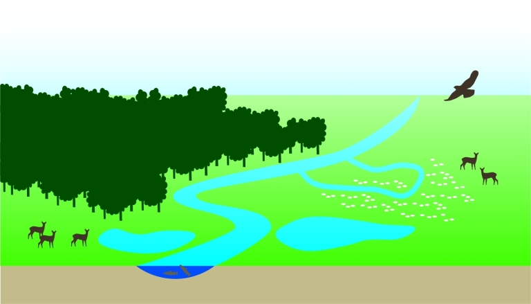 - Ruimte voor kronkelende beken die regelmatig buiten hun oevers treden, beekbodems verhogen.