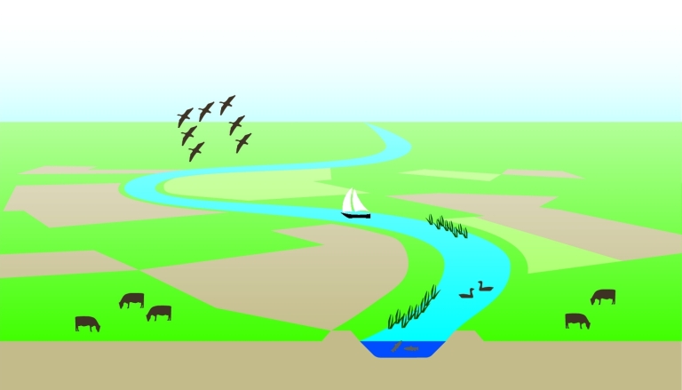 - Robuust moerassysteem, waar natuur en water alle ruimte hebben.