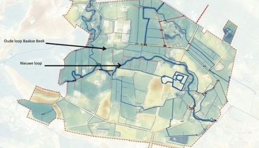 Er komt een nieuwe waterloop. De oude waterloop wordt verondiept (Bron: Waterschap Rijn en IJssel/Arcadis)