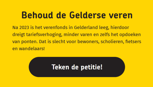 Water Natuurlijk steunt van harte de actie om de Gelderse veren in de vaart te houden. We roepen iedereen op om de petitie ‘Ik houd van veren’ te ondertekenen!