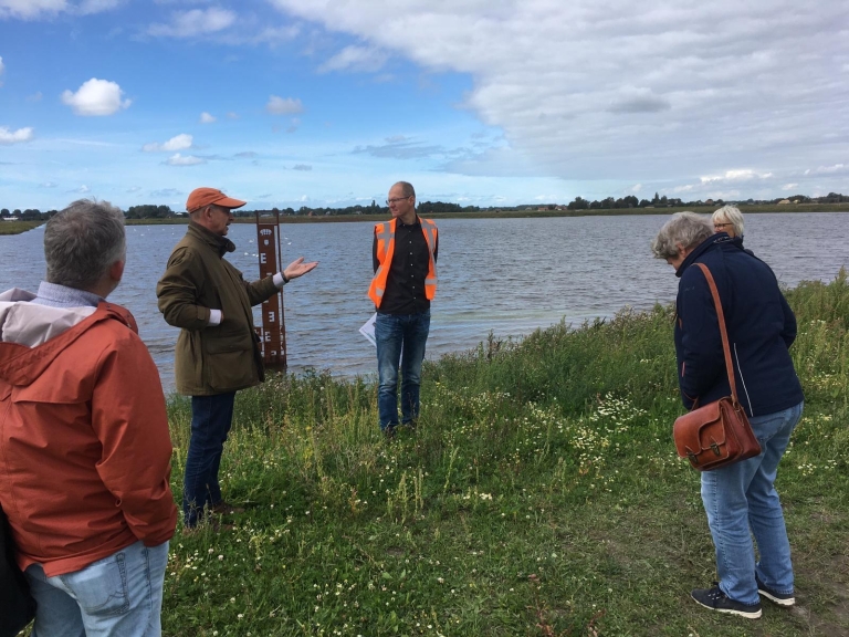 Op maandag 31 augustus heeft de fractie van Water Natuurlijk Delfland een bezoek gebracht aan de Nieuwe Driemanspolder. De polder is een waterberging en tegelijk een natuur- en recreatiegebied tussen Zoetermeer en Zoeterwoude, in het gebied van het Hoogheemraadschap van Rijnland. Onze Hoogheemraad, Waldo von Faber (met oranje pet) en de projectleider Paul Hollander leidden het gezelschap rond. De Neuwe Driemanspolder is een mooi voorbeeld van modern waterbeheer: klimaatrobuust en geschikt voor meerdere functies. De WaterNatuurlijkbezoekers werden bijgepraat over: