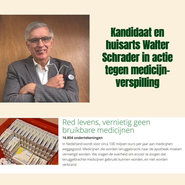 In Nederland wordt jaarlijks voor ca. 100 miljoen euro aan medicijnen weggegooid, verbrand of door het riool gespoeld. Het RIVM schat dat er jaarlijks 1382 ton aan medicijnresten in het Nederlandse afvalwater terechtkomt. Een derde daarvan wordt niet verwijderd door de rioolwaterzuivering. Water Natuurlijk steunt de petitie om heruitgave van niet gebruikte medicijnen mogelijk te maken. Om mensenlevens te redden en het bewustzijn te vergroten om verspilling tegen te gaan, en zo ook vervuiling van oppervlaktewater te beperken.