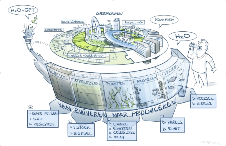 Tot voor kort werd rioolwater als afvalwater gezien wat met grote zorg en hoge kosten gezuiverd moest worden. Het Aquafarm project zorgt voor een kanteling in dit denken door te zoeken naar het terugwinnen van de waardevolle grondstoffen die vervolgens hun weg vinden naar marktpartijen.