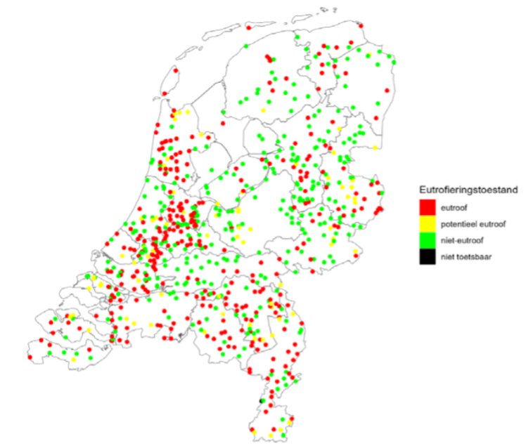 Door te veel stikstof en fosfor in oppervlaktewater voldoet in veel wateren in Nederland de biologische waterkwaliteit niet. Dan leven er bijvoorbeeld te weinig verschillende soorten planten en dieren in. In 44 procent van de wateren in Nederland is de biologie hierdoor niet op orde. In 11 procent van de wateren zijn de concentraties stikstof en fosfor hoog, maar leven er nog genoeg soorten planten en dieren. Er is wel een kans dat de soorten in deze wateren op termijn last krijgen van de hoge concentraties. De waterkwaliteit is in de jaren 2020-2023 in een deel van de oppervlaktewateren verbeterd. Maar er zijn ook wateren waar de kwaliteit achteruit is gegaan.
