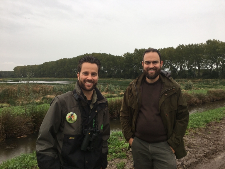 FOTO: Boswachter Bart Pörtzgen (links) en AB-lid Michiel Alexander de Raaf (rechts) in het Andelsch Broek Pompveld.