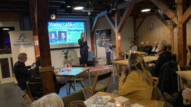 De sprekers gingen met de zaal in gesprek over de vraag hoe goed waterbeheer kan bijdragen aan de kwaliteit van de leefomgeving. De rol van het waterschap hierbij, en hoe kan jij als burger een bijdrage kan leveren.