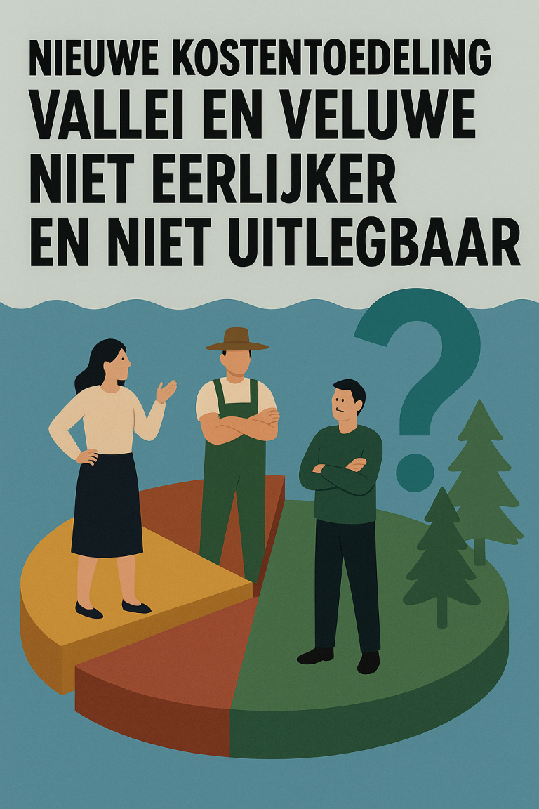 Terugkijkend op de behandeling van de nieuwe kostentoedeling voor waterschap Vallei en Veluwe kunnen we alleen maar concluderen dat dit een farce was. Het doel van de nieuwe kostentoedeling is om per gebied maatwerk te leveren en uit te komen op een eerlijkere verdeling voor jouw gebied tussen de categorieën. Ons Dagelijks Bestuur (DB) leek juist gekozen te hebben om heel bewust zo weinig mogelijk te veranderen in de verdeling die we al hadden.