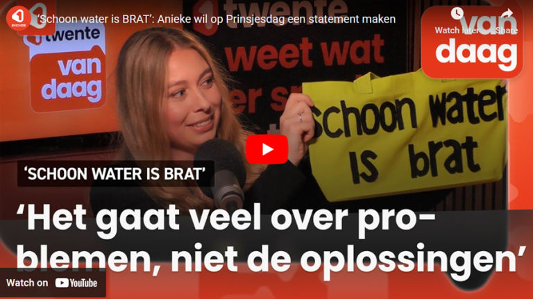 Deze bijzondere kans heeft ze benut om aandacht te vragen voor een thema dat haar nauw aan het hart ligt: écht schoon water. Benieuwd naar haar verhaal? Lees hier het uitgebreide interview met 1Twente of luister het radio-interview terug.